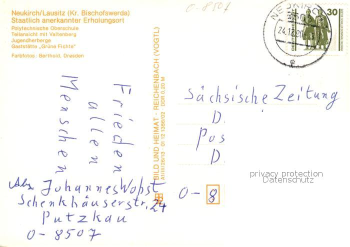 73039943 alte Postkarte Neukirch Lausitz Polytechn Oberschule Teilansicht Valtenberg Jugendherberge Gaststaette Gruene Fichte postalisch gelaufen Erhaltung siehe scans [WerneD78] KatCode: 11110014272250
