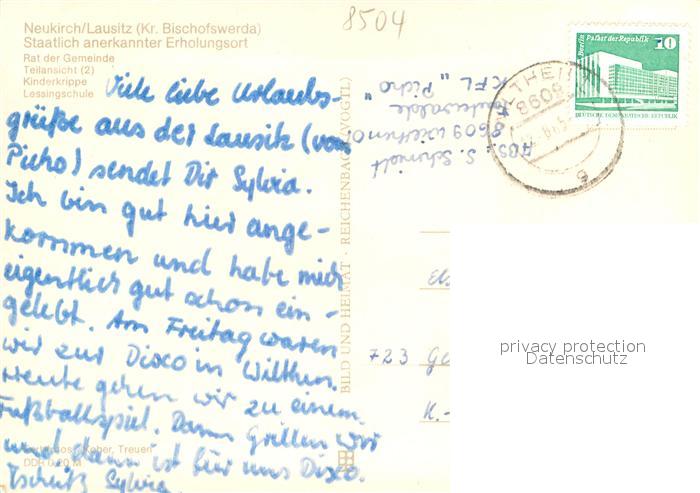 73652196 alte Postkarte Neukirch Lausitz Rat der Gemeinde Teilansichten Kinderkrippe Lessingschule postalisch gelaufen Erhaltung siehe scans [WerneD78] KatCode: 11110014272250