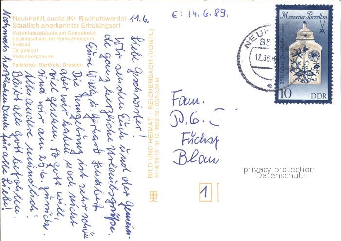 72313568 alte Postkarte Neukirch Lausitz Valtentalseebaude Gondelteich Lessingschule Freibad Teilansicht Valtenbergbaude postalisch gelaufen Erhaltung siehe scans KatCode: 11110014272250