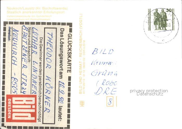 72315062 alte Postkarte Neukirch Lausitz Valtentalseebaude Gondelteich Lessingschule Heimatmuseum postalisch gelaufen Erhaltung siehe scans KatCode: 11110014272250