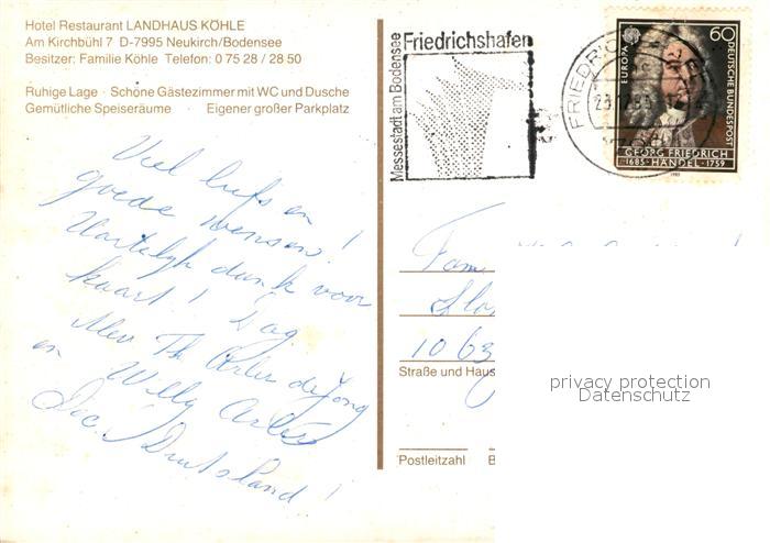 73313746 alte Postkarte Neukirch Tettnang Hotel Restaurant Landhaus Koehle postalisch gelaufen Erhaltung siehe scans [LiesaD40] KatCode: 11110008435042