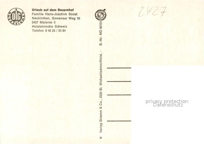 73642726 Neukirchen Eutin Urlaub auf dem Bauernhof Ferienhof Soost Naturpark Holsteinische Schweiz postalisch nicht gelaufen Erhaltung siehe scans [FriedD77] KatCode: 11110001055028