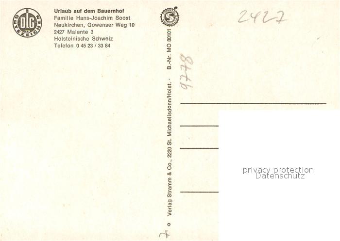 73642730 Neukirchen Eutin Urlaub auf dem Bauernhof Ferienhof Soost Naturpark Holsteinische Schweiz postalisch nicht gelaufen Erhaltung siehe scans [FriedD77] KatCode: 11110001055028