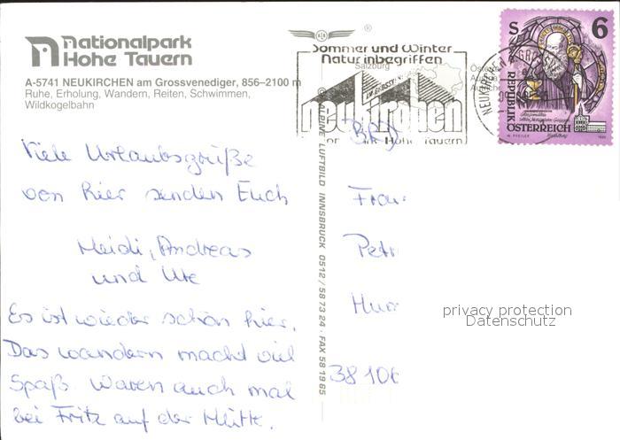 71899790 alte Postkarte Neukirchen Grossvenediger Fliegeraufnahme Nationalpark Hohe Tauern postalisch gelaufen Erhaltung siehe scans KatCode: 11390322050614