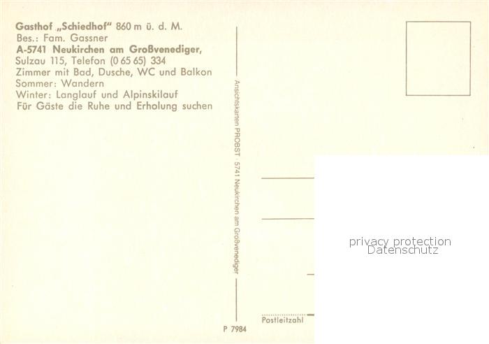 13235304 Neukirchen Grossvenediger Gasthof Schiedhof am Fusse des Grossvenedigers Landschaftspanorama Alpen postalisch nicht gelaufen Erhaltung siehe scans [FriedD77] KatCode: 11390322050614