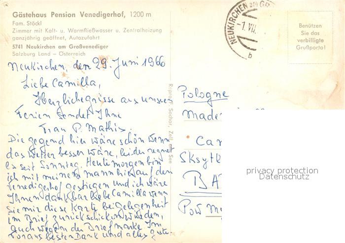 73588089 alte Postkarte Neukirchen Grossvenediger G?stehaus-Pension Venedigerhof postalisch gelaufen Erhaltung siehe scans [PaolaD17] KatCode: 11390322050614