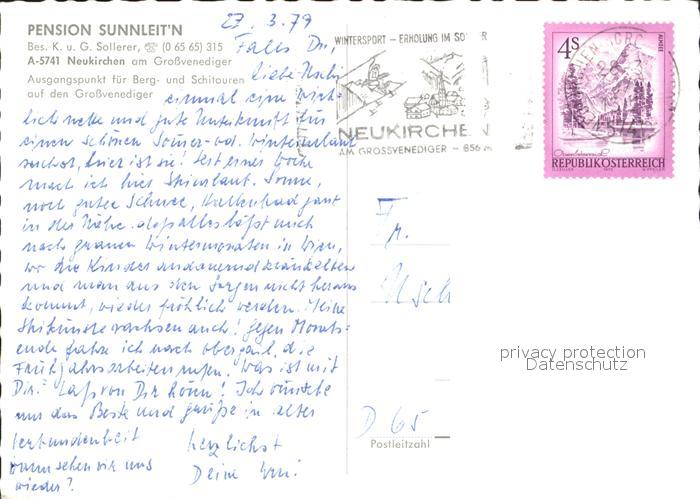 71989143 alte Postkarte Neukirchen Grossvenediger Pension Sunnleit’n postalisch gelaufen Erhaltung siehe scans KatCode: 11390322050614