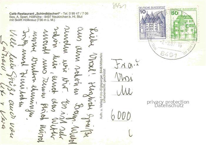 74049622 alte Postkarte Neukirchen Heilig Blut Bayern Café Restaurant Schindldacherl Gastraum postalisch gelaufen Erhaltung siehe scans [FriedD77] KatCode: 11110009372144