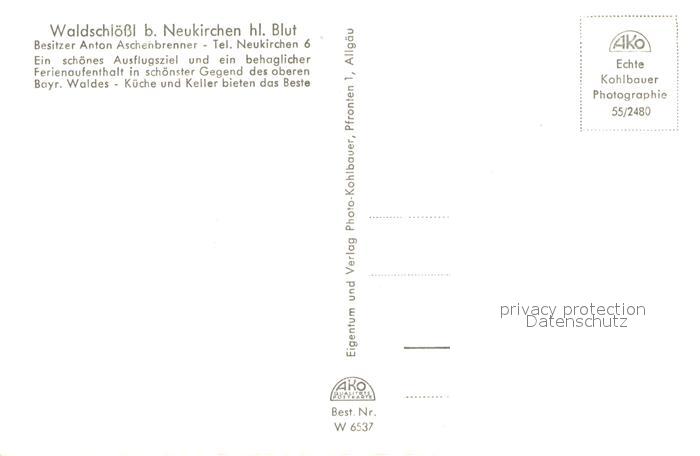 73725878 Neukirchen Heilig Blut Waldschloessl Ausflugsziel Gaststaette postalisch nicht gelaufen Erhaltung siehe scans [FriedD77] KatCode: 11110009372144