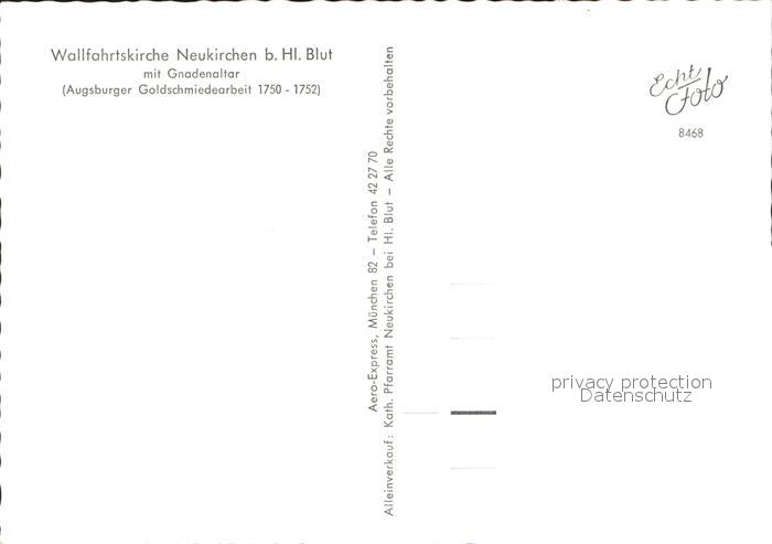 72356821 Neukirchen Heilig Blut Wallfahrtskirche Gnadenaltar postalisch nicht gelaufen Erhaltung siehe scans KatCode: 11110009372144
