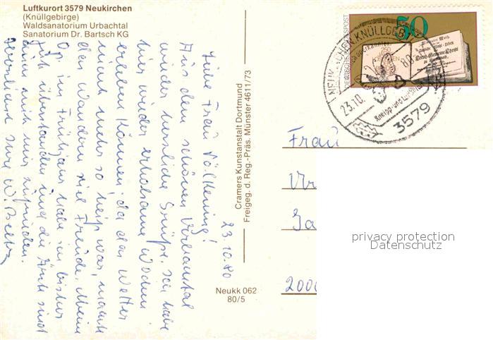 72719789 alte Postkarte Neukirchen Knuellgebirge Fliegeraufnahme Waldsanatorium Urbachtal postalisch gelaufen Erhaltung siehe scans [LiesaD40] KatCode: 11110006634017