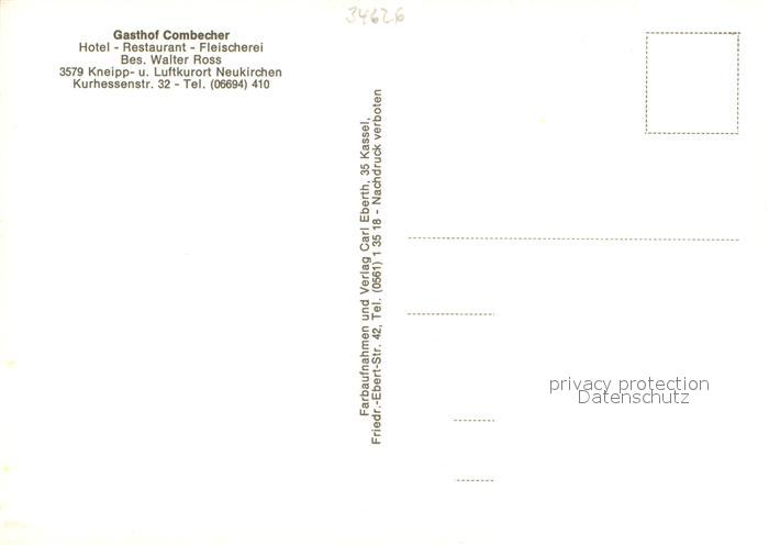 73651623 Neukirchen Knuellgebirge Gasthof Combecher Hotel Restaurant Fleischerei postalisch nicht gelaufen Erhaltung siehe scans [FriedD77] KatCode: 11110006634017