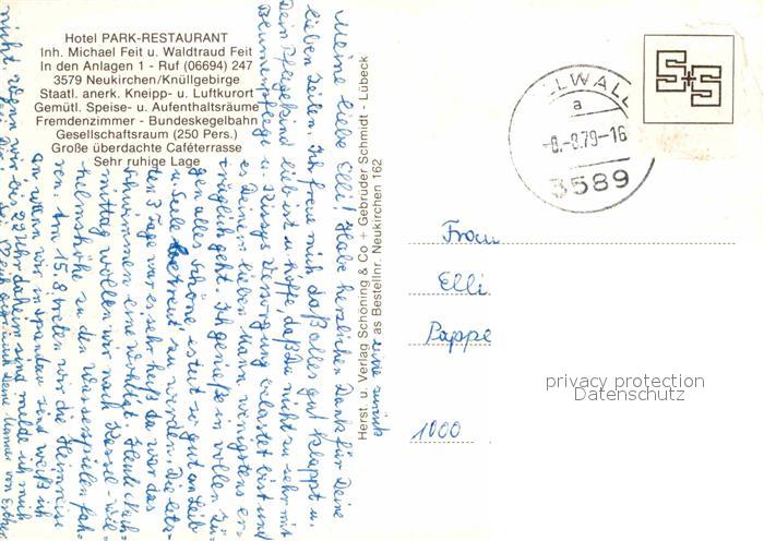 72726667 alte Postkarte Neukirchen Knuellgebirge Hotel Park Restaurant Gastraeume Park postalisch gelaufen Erhaltung siehe scans [WerneD78] KatCode: 11110006634017