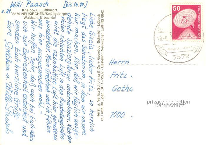 73761897 alte Postkarte Neukirchen Knuellgebirge Kurhaus Waldsan Urbachtal Fliegeraufnahme postalisch gelaufen Erhaltung siehe scans [FriedD77] KatCode: 11110006634017