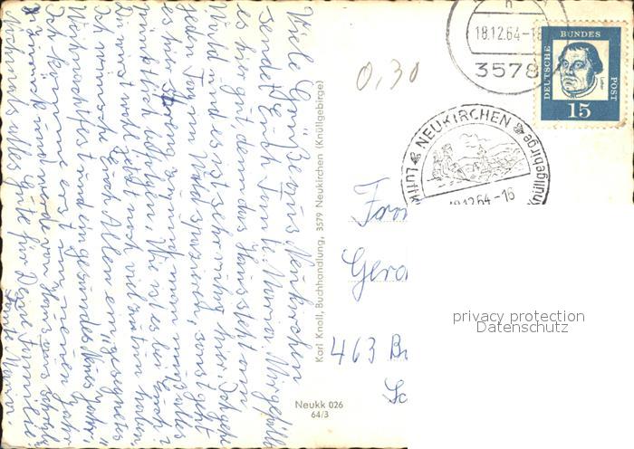 72529182 alte Postkarte Neukirchen Knuellgebirge Kurhessenstr Kleingolfanlage Schwimmbad Leitebrunnen Parkhaus postalisch gelaufen Erhaltung siehe scans KatCode: 11110006634017