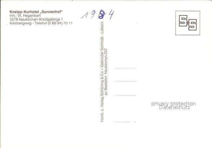 72072056 Neukirchen Knuellgebirge Kurhotel Sonnenhof postalisch nicht gelaufen Erhaltung siehe scans KatCode: 11110006634017