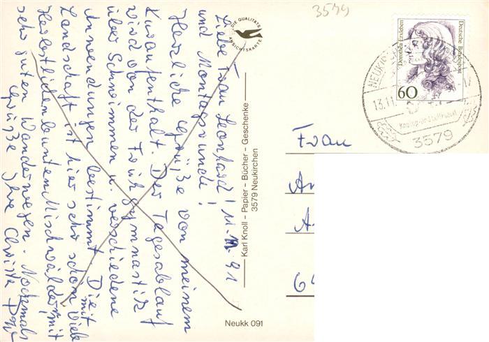 73935285 alte Postkarte Neukirchen Knuellgebirge Raiffeisen Platz Jahn Tor Untergasse Rehacentrum postalisch gelaufen Erhaltung siehe scans [FriedD77] KatCode: 11110006634017