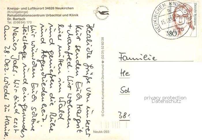 73165398 alte Postkarte Neukirchen Knuellgebirge REHA Centrum Urbachtal Klinik Doktor Bartsch postalisch gelaufen Erhaltung siehe scans [KathaD81] KatCode: 11110006634017