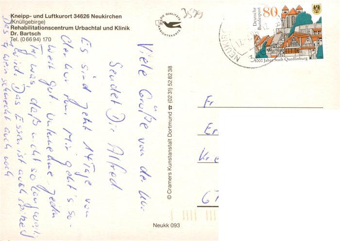 73935426 alte Postkarte Neukirchen Knuellgebirge Rehacentrum Urbachtal und Klinik Dr Bartsch KG Fliegeraufnahme postalisch gelaufen Erhaltung siehe scans [FriedD77] KatCode: 11110006634017