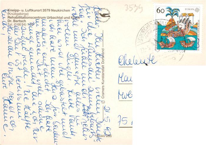 73935305 alte Postkarte Neukirchen Knuellgebirge Rehacentrum Urbachtal und Klinik Dr Bartsch KG Hallenbad Gastraum Aufenthaltsraum postalisch gelaufen Erhaltung siehe scans [FriedD77] KatCode: 11110006634017