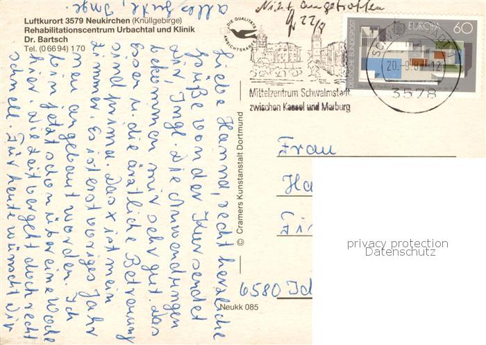 73759284 alte Postkarte Neukirchen Knuellgebirge Rehazentrum Urbachtal und Klinik Dr Bartsch postalisch gelaufen Erhaltung siehe scans [FriedD77] KatCode: 11110006634017