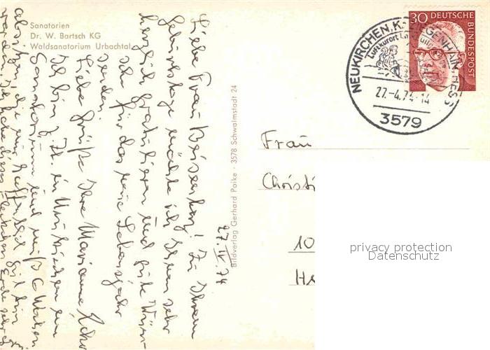 72826150 alte Postkarte Neukirchen Knuellgebirge Sanatorien Dr. W. Bartsch KG Waldsanatorium Urbachtal postalisch gelaufen Erhaltung siehe scans [NatalD47] KatCode: 11110006634017