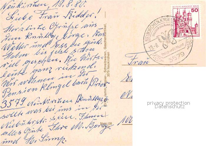 72885558 alte Postkarte Neukirchen Knuellgebirge Stadtpanorama Fachwerkhaus Bachlauf Freibad postalisch gelaufen Erhaltung siehe scans [FriedD77] KatCode: 11110006634017