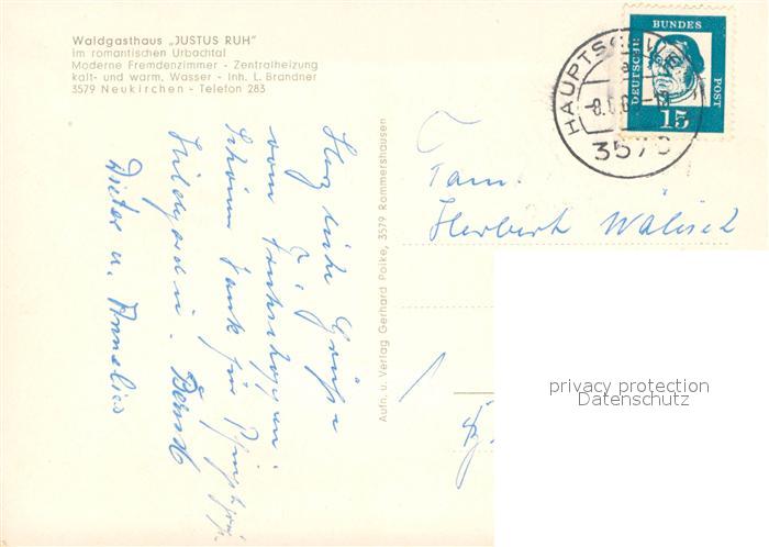 73658682 alte Postkarte Neukirchen Knuellgebirge Waldgasthaus Justus Ruh Gastraum postalisch gelaufen Erhaltung siehe scans [FriedD77] KatCode: 11110006634017