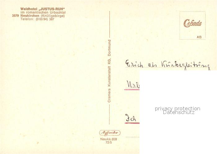 73616342 Neukirchen Knuellgebirge Waldhotel Justus-Ruh Gaststube Terrasse Panorama postalisch nicht gelaufen Erhaltung siehe scans [WerneD78] KatCode: 11110006634017