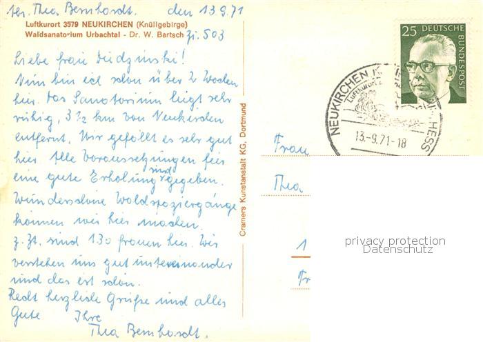 73759283 alte Postkarte Neukirchen Knuellgebirge Waldsanatorium Urbachtal Gastraeume postalisch gelaufen Erhaltung siehe scans [FriedD77] KatCode: 11110006634017