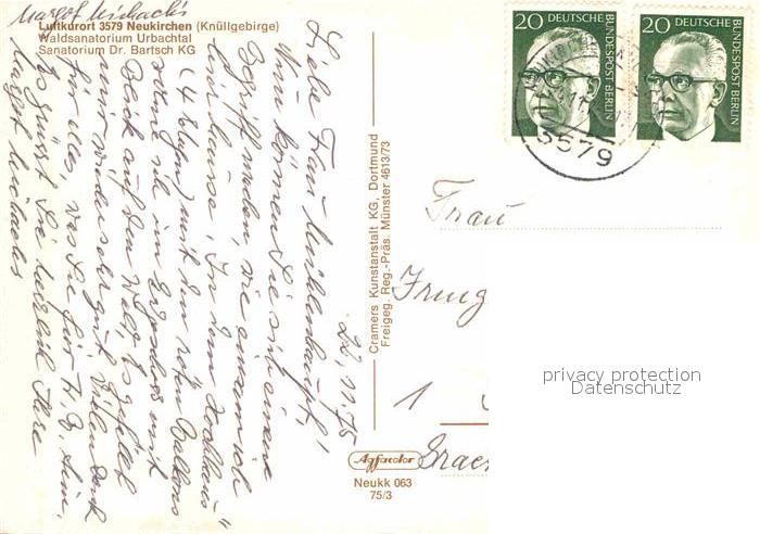 72725872 alte Postkarte Neukirchen Knuellgebirge Waldsanatorium Urbachtal Sanatorium Dr Bartsch Fliegeraufnahme postalisch gelaufen Erhaltung siehe scans [WerneD78] KatCode: 11110006634017