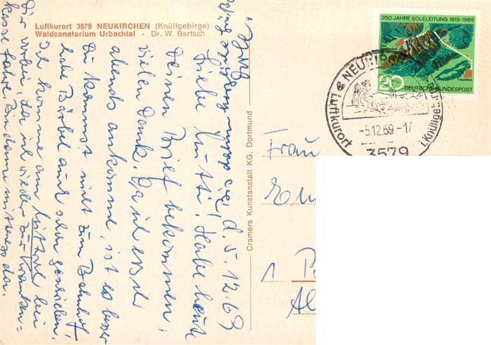 73935303 alte Postkarte Neukirchen Knuellgebirge Waldsanatorium Urbachtal und Klinik Dr Bartsch KG postalisch gelaufen Erhaltung siehe scans [FriedD77] KatCode: 11110006634017