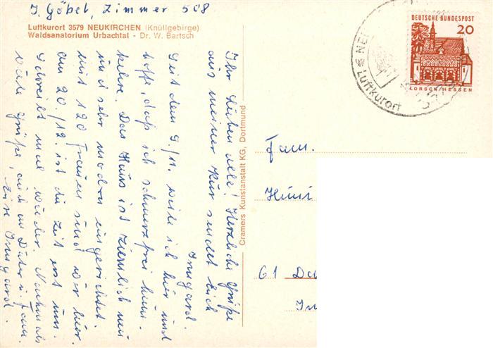 73935295 alte Postkarte Neukirchen Knuellgebirge Waldsanatorium Urbachtal und Klinik Dr Bartsch KG postalisch gelaufen Erhaltung siehe scans [FriedD77] KatCode: 11110006634017