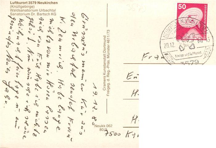 73935267 alte Postkarte Neukirchen Knuellgebirge Waldsanatorium Urbachtal und Klinik Dr Bartsch KG Fliegeraufnahme postalisch gelaufen Erhaltung siehe scans [FriedD77] KatCode: 11110006634017