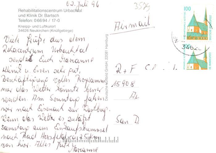 73935315 alte Postkarte Neukirchen Knuellgebirge Waldsanatorium Urbachtal und Klinik Dr Bartsch KG Fliegeraufnahme postalisch gelaufen Erhaltung siehe scans [FriedD77] KatCode: 11110006634017