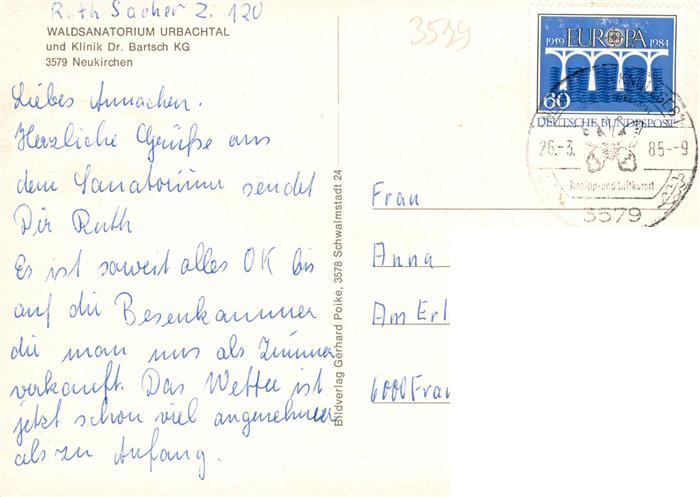 73935304 alte Postkarte Neukirchen Knuellgebirge Waldsanatorium Urbachtal und Klinik Dr Bartsch KG Fliegeraufnahme postalisch gelaufen Erhaltung siehe scans [FriedD77] KatCode: 11110006634017