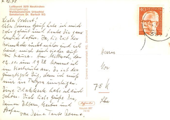 73935276 alte Postkarte Neukirchen Knuellgebirge Waldsanatorium Urbachtal und Klinik Dr Bartsch KG Pavillon postalisch gelaufen Erhaltung siehe scans [FriedD77] KatCode: 11110006634017
