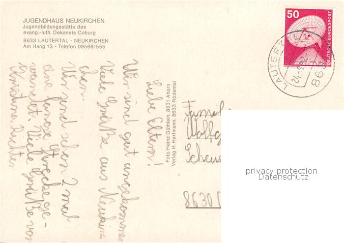 73837292 alte Postkarte Neukirchen Lautertal Jugendbildungsstaette des ev luth Dkanats Coburg Gastraeume Panorama postalisch gelaufen Erhaltung siehe scans [WerneD78] KatCode: 11110009473141