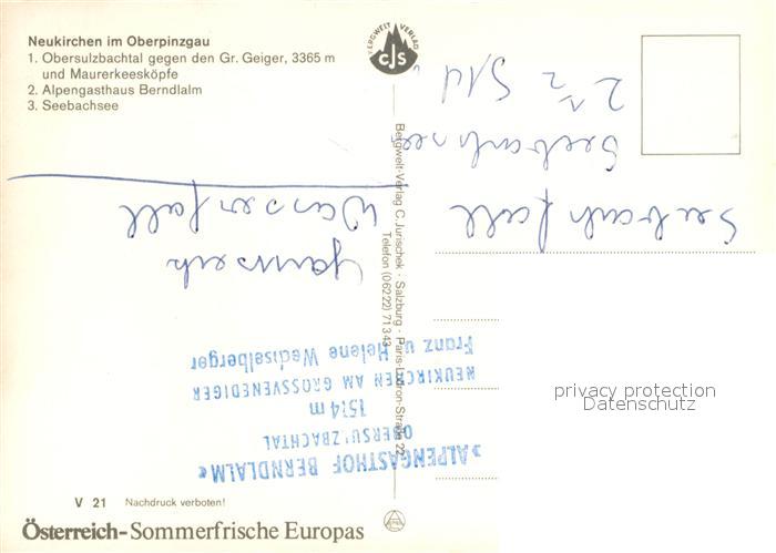 73169064 Neukirchen Oberpinzgau Obersulzbach mit Gr Geiger Alpengasthaus Berndlalm Seebachsee postalisch nicht gelaufen Erhaltung siehe scans [WerneD78] KatCode: 11110009277111