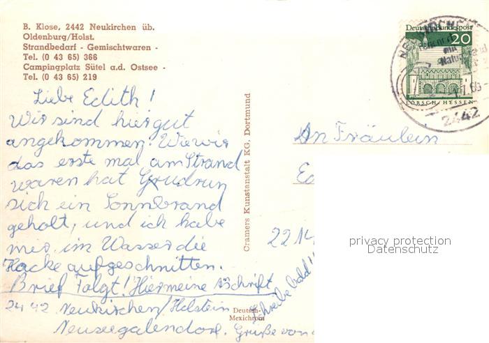 72935258 alte Postkarte Neukirchen Oldenburg Fliegeraufnahme Strandbedarf Gemischtwaren Camping postalisch gelaufen Erhaltung siehe scans [LiesaD40] KatCode: 11110001055031