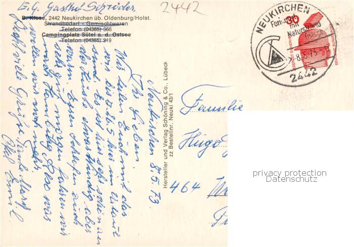 73861409 alte Postkarte Neukirchen Oldenburg Ortsansichten Strand postalisch gelaufen Erhaltung siehe scans [FriedD77] KatCode: 11110001055031