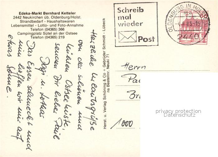 73670123 alte Postkarte Neukirchen Oldenburg Teilansichten Kirche postalisch gelaufen Erhaltung siehe scans [WerneD78] KatCode: 11110001055031