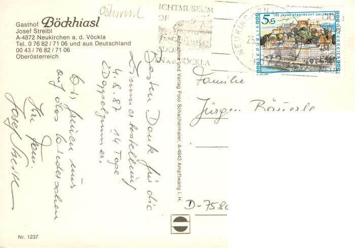 73923575 alte Postkarte Neukirchen Voeckla Ortspartie Gasthof Boeckhiasl Gastraeume postalisch gelaufen Erhaltung siehe scans [FriedD77] KatCode: 11390315041716