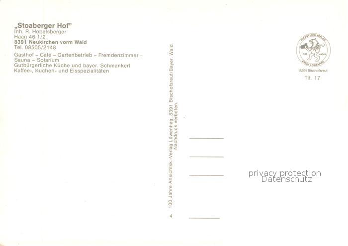 73654753 Neukirchen Wald Gasthof Restaurant Stoaberger Hof im Bayerischen Wald Landschaftspanorama Partie am Wasser postalisch nicht gelaufen Erhaltung siehe scans [FriedD77] KatCode: 11110009275135