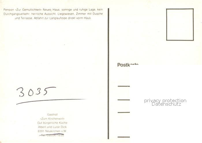 73660513 Neukirchen Wald Pension zur Gemuetlichkeit Gaststube Fremdenzimmer postalisch nicht gelaufen Erhaltung siehe scans [FriedD77] KatCode: 11110009275135