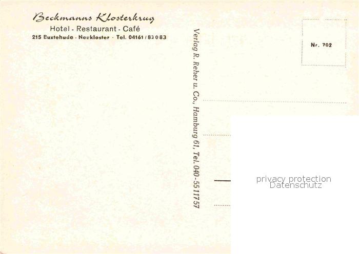 72841888 Neukloster Niederelbe Beckmanns Klosterkrug Hotel Restaurant postalisch nicht gelaufen Erhaltung siehe scans [WerneD78] KatCode: 11110003359010
