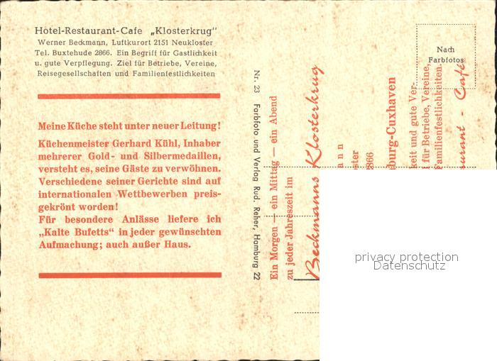 72042788 Neukloster Niederelbe Hotel Restaurant Cafe Klosterkrug postalisch nicht gelaufen Erhaltung siehe scans KatCode: 11110003359010
