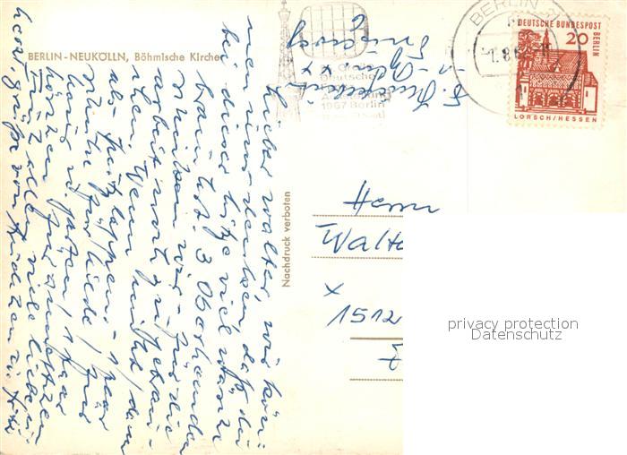 73282334 alte Postkarte Neukoelln Boehmische Kirche postalisch gelaufen Erhaltung siehe scans [LiesaD40] KatCode: 11110011000000