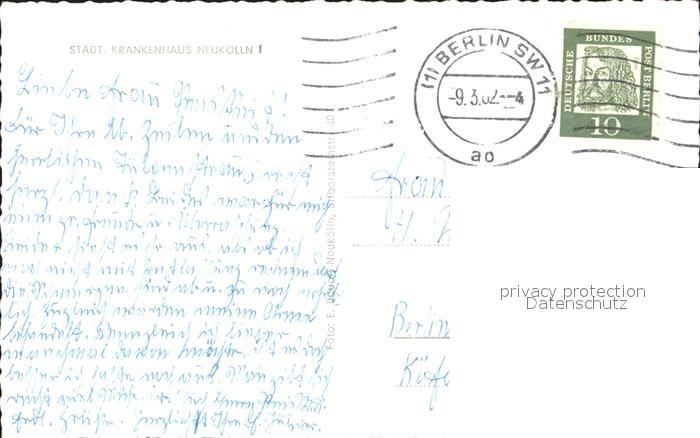 71990862 alte Postkarte Neukoelln Staedtisches Krankenhaus Park postalisch gelaufen KatCode: 11110011000000