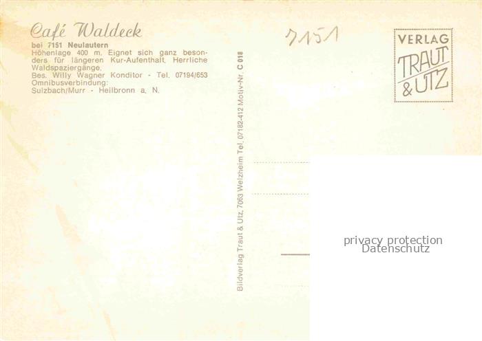 74052755 Neulautern Cafe Waldeck postalisch nicht gelaufen Erhaltung siehe scans [WerneD78] KatCode: 11110008125107